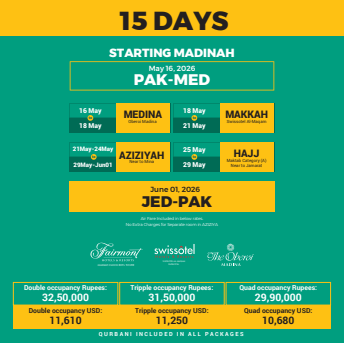 - Road to Makkah: New facility at Islamabad and Karachi airports.